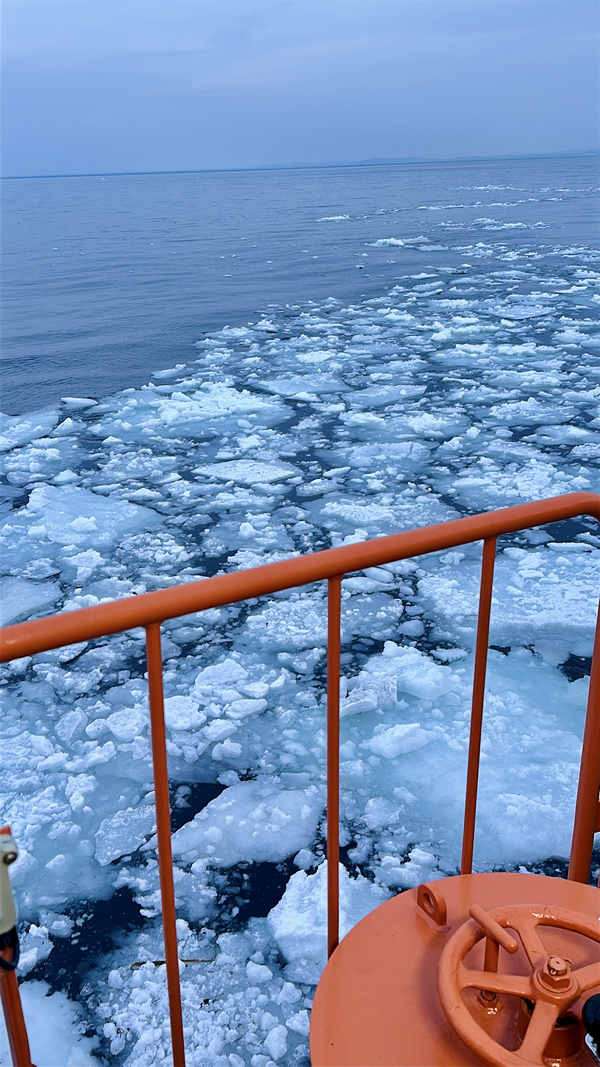 Warm indoor viewing: from the large windows on the second floor, enjoy watching the propellers break through the drifting ice in a comfortable, heated space.